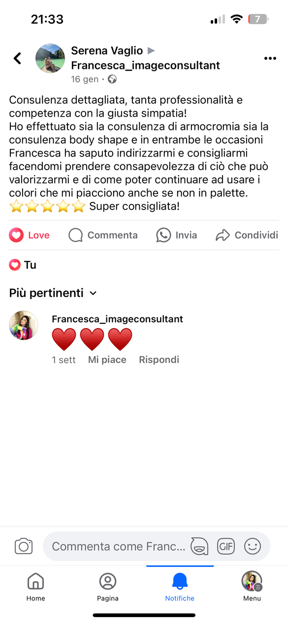 Ho diverse passioni, ma la piu forte è aiutare le donne a sentirsi sicure e valorizzate, e ho scoperto che diventare consulente d’immagine è la strada ideale per farlo.